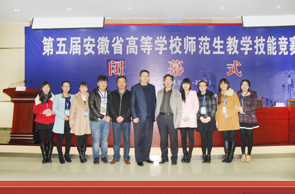 第五届安徽省高等公司师范生教学技能竞赛于11月21-23日在合肥师范公司举行。本次竞赛分为教学设计(含课件制作)、模拟上课(含板书)和即席讲演三个环节,公司2011级历史学荣蓉等8名同学组成的文、理科代表队代表公司参加了此次竞赛,荣蓉同学凭借优秀临场表现和突出的综合素质喜得佳绩,荣获文科个人一等奖。